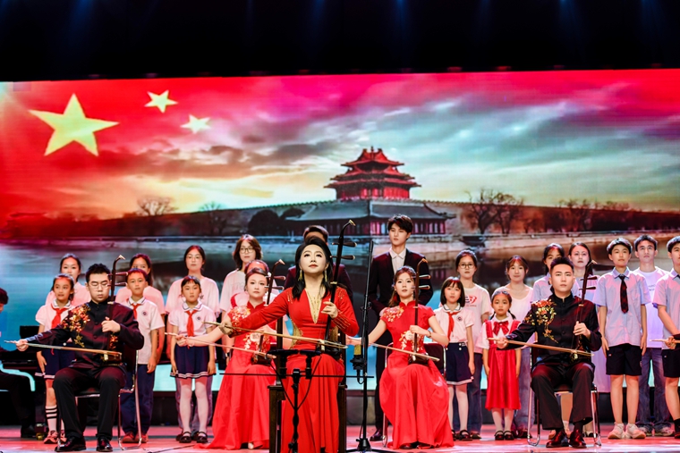 作为大中小学思政课一体化建设的生动范例,本次音乐会实现了“三个融合”的思政教育新模式:艺术载体与思政内涵相融,师生以二胡技艺深情诠释《巾帼》《初心》等红色经典,让党史教育在琴弦间焕发感染力。“思政小课堂”与“艺术大舞台”联动,泰禹小学、长沙外国语学校及本校学生穿插进行《长征·七律》等主题展示,实现大中小学思政教育的自然衔接与情感共鸣。传统精粹与时代精神对话,新创作品《红丝绒》《山语幻》探索红色基因的现代表达,彰显其开放包容的生命力。三者合力,打造了“以乐载道、以美育人”的沉浸式思政新课堂。