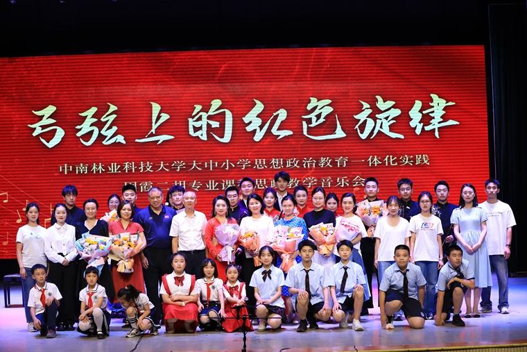 6月6日晚,由中南林业科技大学体育与音乐学院、马克思主义学院牵头,长沙外国语学校、长沙市雨花区泰禹小学共同打造的弓弦上的红色旋律——周霞二胡专业课程思政教学音乐会在中南林业科技大学雅韵堂上演。出席本次活动的省音协代表有:湖南省音协副主席、湖南艺术职业学院戏剧学院院长蔡霞,省音协二胡学会副会长周芳、副秘书长崔甜甜、理事王莉莉等。本次活动作为大中小学思想政治教育一体化实践的创新性展示,以二胡艺术为独特载体,用跨越时空的红色旋律生动串联中国共产党百年奋斗史诗,为现场400余名师生带来一堂跨越学段、声情并茂的沉浸式艺术思政大课。