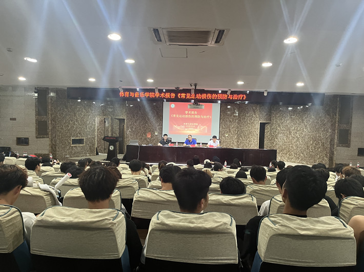 5月31日,体育与音乐学院邀请长沙市中心医院运动医学科邹明医生来校开展题为《常见运动损伤的预防与治疗》的学术报告。体育与音乐学院副院长王志意、教师代表及社会体育指导与管理和舞蹈专业全体同学聆听了本次讲座。