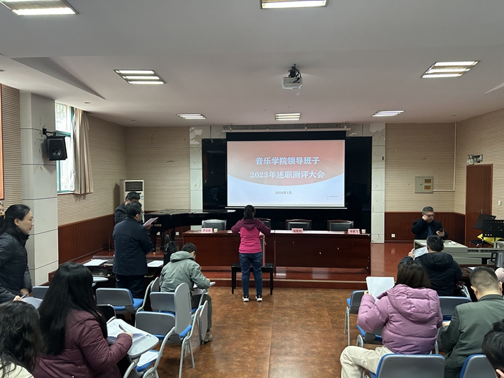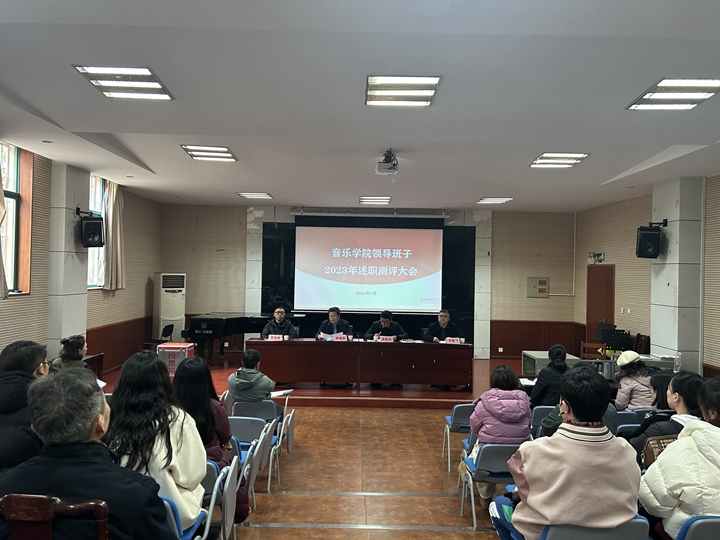 1月7日,音乐学院在雅乐楼多功能阶梯教室召开2023年度领导班子及处级干部述职测评大会,本次会议由学校宣传部副部长张胜利主持,学校副校长尹双凤、组织部王玉璇老师出席指导,音乐学院领导班子及全体教职工参加本次会议。