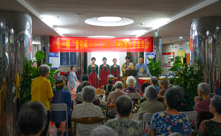 6月30日下午,中南林业科技大学音乐学院“穿越华夏”沉浸式传统文化体验系列活动之“诗画中国·品味传统,老少共融”在长沙第一社会福利院举行,活动持续近两小时,共计40多位老人参加。