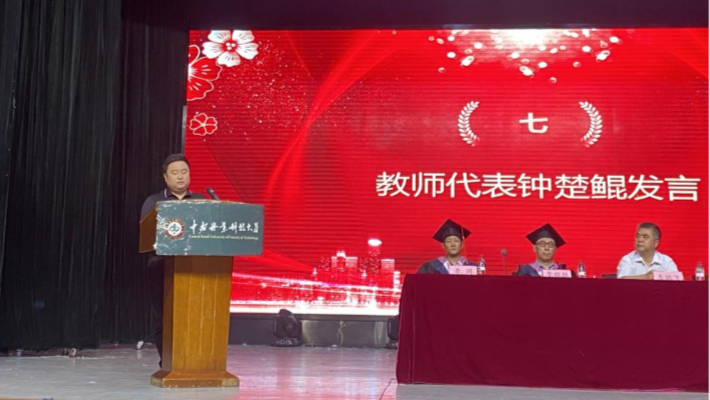 教师代表、毕业班班主任钟楚鲲老师发言,钟老师围绕青春、生活、社会进行了分享,给同学们上了毕业前的最后一堂课,希望同学们未来时刻保持学习的姿态,努力奋斗。