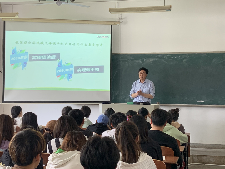 5月16日下午,朱道弘副校长在树人楼南502以《打好实现碳达峰碳中和这场硬仗》为主题,为音乐学院2020级学生讲授了一堂精彩的思政课。