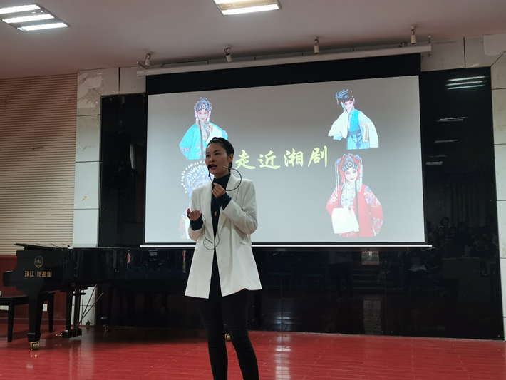 为弘扬优秀文化,传承戏曲艺术,进一步增强中华民族的文化自信,丰富校园文化生活,培养学生兴趣爱好,提高学生艺术修养,2021年6月4日,我院邀请了长沙湘剧传承与保护中心著名演员周帆老师来校举办题为《走近湘剧》的专题讲座。