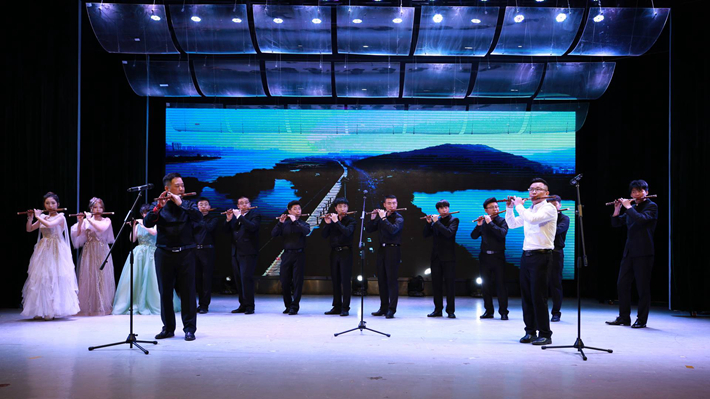 首先第一个节目是由萨克斯和竹笛混合乐团带来的《我的祖国》和《彩蝶》。