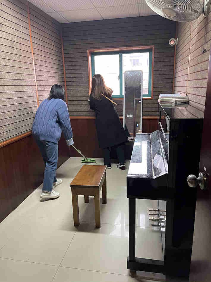 此次活动主要对雅乐楼各琴房、教室、楼道及卫生垃圾死角进行集中清扫。活动中,党员们充分发挥不怕脏、不怕累的精神,有的手拿扫帚、有的拿着抹布,对琴房、教室逐一进行清扫工作,不落下任何一个角落,不放过一张纸屑。经过齐心协力,将90余间琴房及教室的卫生死角进行了彻底的清理,琴房、教室面貌焕然一新,给同学们营造了一个良好的学习环境。