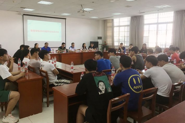 6月12日上午,体育学院在体育艺术馆一楼会议室召开了2020届毕业生座谈会。学院党总支书记袁铁民、院长李雄光、副院长王志意、党总支副书记邹铁军、社体系主任肖全红和教师代表、辅导员、班主任以及全体毕业生参加了座谈会。座谈会由学院党委副书记邹铁军主持。