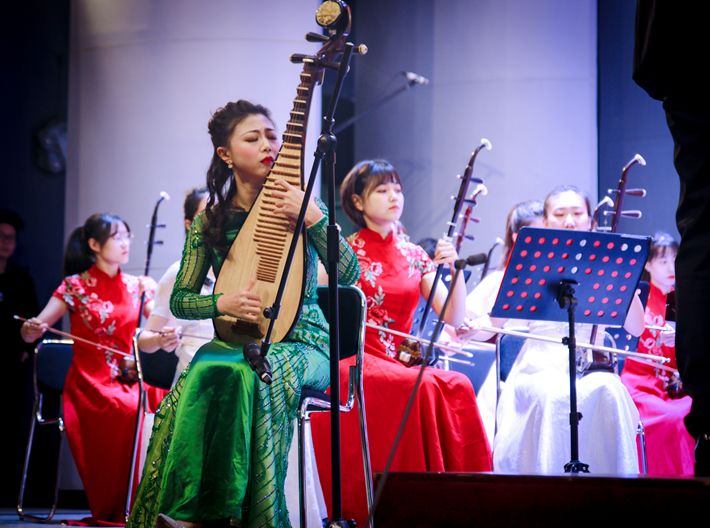 本场音乐会,由国家一级指挥刘毓麟先生与音乐学院指挥方向研究生担任指挥,音乐学院二胡专业副教授周霞、琵琶专业青年教师陈依美智担纲主奏。音乐会在民族管弦乐《庆典序曲》明快舒展的奏鸣中拉开帷幕。随后民族管弦乐曲《月儿高》《京调》、二胡协奏曲《红梅随想曲》、二胡重奏《打虎上山》、古筝重奏《欢沁》、民族室内乐重奏《江南风韵》、琵琶协奏曲《云想花想》等作品相继上演,精彩的演奏赢得了现场热烈的掌声。
