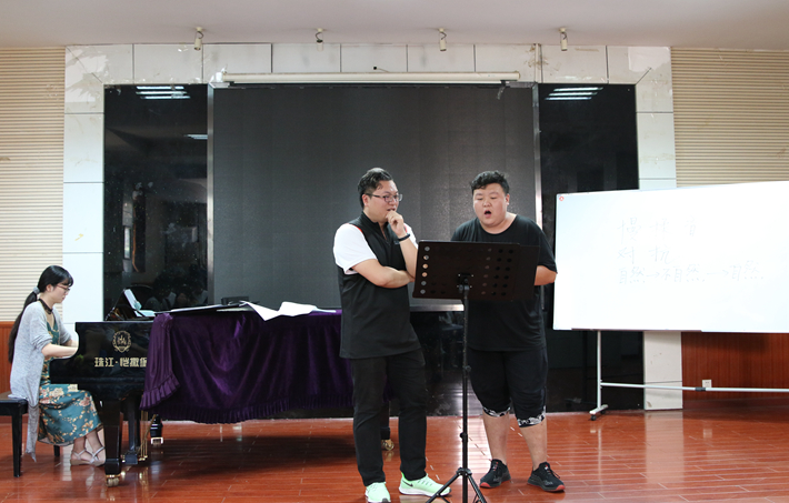 首先,任博士分享了自己在英国皇家音乐学院求学的经验,以及这一年来的学习心得。随后给几位本科研究生进行了现场授课。他说,可以通过朗诵歌词来把握歌曲情感,通过练声来寻找歌唱时的支撑点,并且详细分析学生存在的各种问题,解决了同学们在歌唱时的诸多困惑。