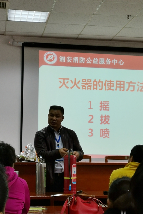 为提高全院教职员工对消防安全工作的认识,进一步掌握消防安全知识及灭火器的使用方法。4月30日下午,我院在体育艺术馆一楼会议室开展了一次别开生面的消防安全知识讲座。此次讲座诚邀湘安消防公益服务中心主任吴悔教官来我院进行专题讲座。