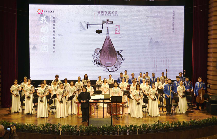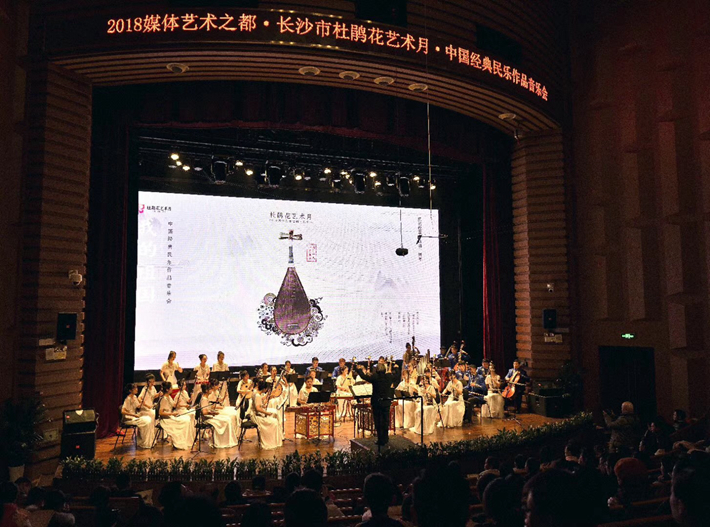 1月5日晚,由中共长沙市委宣传部主办、长沙市歌剧剧院承办的2018媒体艺术之都·长沙“杜鹃花”艺术月———“我的祖国”中国经典民乐作品音乐会在长沙音乐厅麓山中厅隆重上演,本场音乐会由中南林业科技大学音乐学院民乐团和长沙市歌舞剧院民乐团联合组成的民族管弦乐团联袂演出,并邀请武汉音乐学院中乐系打击乐组合作为表演嘉宾,共同奉献了一场民族味儿十足的视听盛宴,上演了三首经典民乐合奏曲《京调》、《月儿高》、《我的祖国》和琵琶重奏《龙船》、二胡独奏《弦语》、唢呐独奏《百鸟朝凤》等优秀曲目,本场音乐会由国家一级指挥、中国民族管弦乐会指挥专业委员会理事刘毓麟教授执棒,赢得了在场观众的热烈掌声。