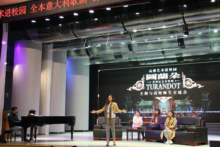由意大利著名作曲家贾科莫·普契尼创作的经典歌剧《图兰朵》享誉世界,由意大利米兰歌剧院复排的歌剧《图兰朵》将在10月26-27日首次受邀在湘上演。借此难得机会,10月22日下午,我院邀请意大利米兰歌剧院歌剧《图兰朵》剧组的歌唱家在学校雅韵堂举办了首次在湘高校见面交流会,我院声乐教师和全体音乐表演专业的学生参加了此次交流会。