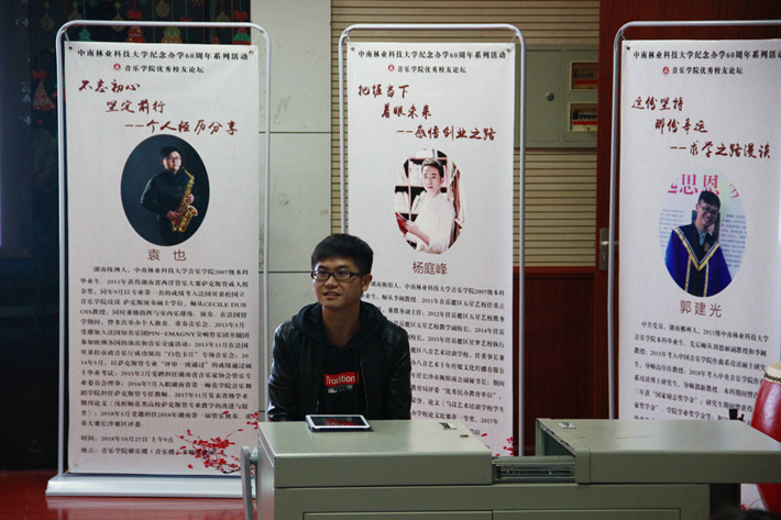 音乐学院借校友回母校相聚之际,特邀请毕业后在不同领域作出不同成绩的优秀校友给学生们做个人成长经历分享。2007级优秀校友、音乐学院校友分会副会长八音艺术培训学校校长杨庭峰、湖南第一师范学院萨克斯管专任教师、音乐学院校友分会副会长袁也,2011级优秀校友中央音乐学院在读博士、音乐学院校友分会常务理事郭建光,他们分别以“把握当下 着眼未来”、“不忘初心 坚定前行”、“这份幸运 那份坚持”为主题,以不同方式分享了他们的成长经历,分享了在他们的创业、求职、升学过程中的酸甜苦辣,同时在座各位体会得到他们对母校、对老师的感恩之情,在他们身上向在座的折射出良好的乐观、自信、自尊、热情、宽容、认真、独立、主动、积极、充满希望和永不衰退的欣赏力等人格特征。