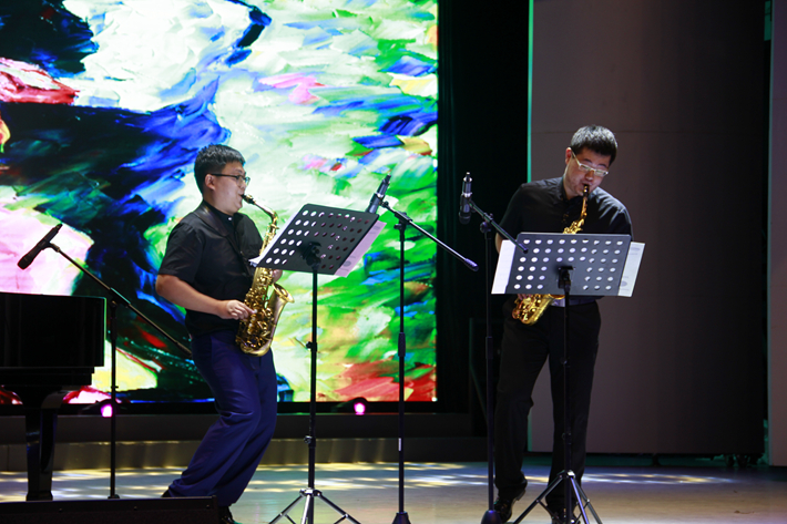 音乐会以一首竹笛重奏《步步高》开场,曲如其名,旋律轻快激昂,层层递增,节奏明快,给人以奋发上进的积极意义。音乐会还上演了《紫竹调》《大漠》《月宫》《小查尔达斯舞曲》等经典的曲目。最后,石长俊老师带来了萨克斯独奏《eight candles》。此曲是Dave Koz的经典曲目,为爵士蓝调风格,用爵士的方法来演奏蓝调,风格独特,赢得了在场观众的掌声。
