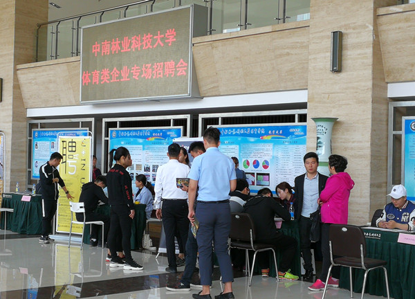 2018年4月9日上午,中南林业科技大学首届体育类企业专场招聘会在体育艺术馆顺利召开。