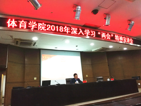 为深入学习“两会”精神,增强我院师生的思想政治理论素养。4月26日上午,体育学院在图书馆报告厅召开了深入贯彻学习两会精神的宣讲会,全国人大代表、我校李建安教授传达了第十三届全国人大第一次会议精神。会议由体育学院党总支书记袁铁民主持,全院师生到场聆听。