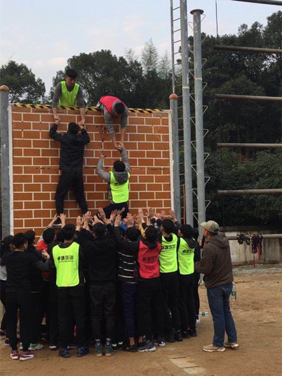 丨毕业墙丨“人心齐,泰山移”,只要将团队凝聚起来,那什么事都是有可能完成的。面对4.2米的高墙,全班33人在不借助外力的情况下,在6分钟内完成了任务,充分体现了团队的配合、信任与团结。