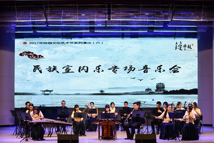 本场演出即是2017校园文化艺术节系列演出第六场,同样也是音乐学院民族室内乐团、听松筝乐团建团以来的首场演出。音乐会共表演了苏堤漫步、丝绸之路、西部主题畅想曲、采红菱、银河碧波、丝竹新韵、世界上唯一的花、卡农、天山之歌、花好月圆十首不同形式风格的民族室内乐曲,民族器乐特有的古朴、优美、雅致的音乐风格,令观众如痴如醉。