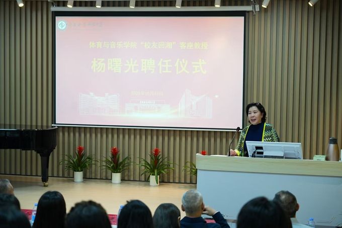 杨曙光在致辞中表示,非常荣幸能够受聘为中南林业科技大学客座教授,也将充分发挥自己的专业优势,为学院的发展贡献更多的力量。她积极响应“校友回湘”号召,深感于家乡的培育之恩,愿以此次受聘为契机,与师生携手共进,助力湖南高校音乐学科迈上新台阶。(文/刘薇薇 图/音乐影像志工作室 一审/曹凌 二审/钟楚鲲 三审/李婷)