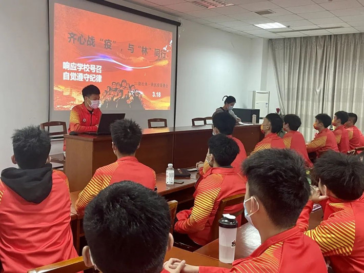 3月18日,体育学院开展了“齐心抗疫,与林同行”主题班会,旨在弘扬和传承雷锋精神,帮助我们进一步坚定疫情防控战必胜的信念,进一步凝聚疫情防控的道德力量,响应学校号召自觉遵守纪律,汇聚力量共战疫情。班会结束后举行了横幅签字活动,大家纷纷在“齐心战疫,与林同行”的横幅上面留下自己的姓名。