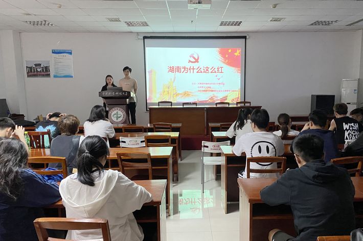 活动首先由学校习近平新时代中国特色社会主义思想研究社宣讲员许婷为大家做“湖南为什么这么红”主题宣讲,从心忧天下的爱国情怀、实事求是的务实作风、敢为人先的创新精神、敢于牺牲的斗争精神四个方面讲述了湖南人民在党的领导下为共产主义事业不懈奋斗的过程,充分展示了湖南党史军史人物的光辉事迹,加深了同学们对湖南人民进行革命斗争的艰辛历程的了解。